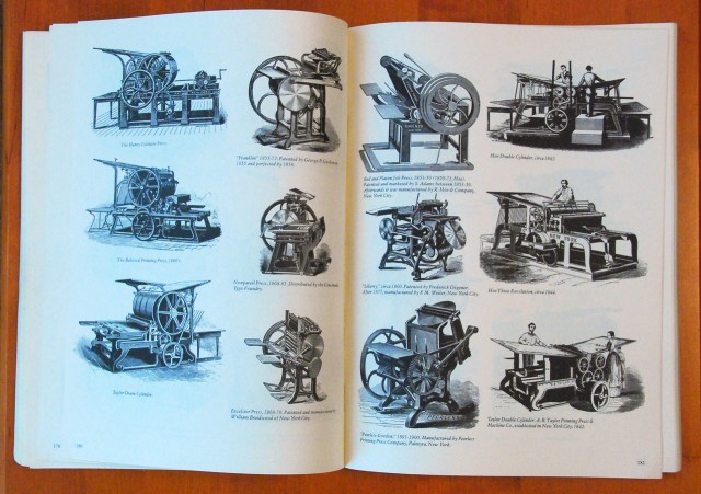 Najpierw krótkie przypomnienie czcionkarstwa europejskiego, głównie angielskiego, albowiem z graficznego punktu widzenia wpływ wzorów literniczych, pochodzących z wiktoriańskiej Anglii, jest tu bardzo widoczny. Autor przedstawia pierwszych amerykańskich producentów i ich fabryki afiszowych czcionek. Znalazły się tu też reprodukcje dziewiętnastowiecznych fotografii i rycin. Jest mowa o sposobach wykonywania »drewniaków«, urządzeniach grawerskich oraz maszynach, na których drukowano – i tu znów ciekawe ilustracje. Opisane są dokładnie poszczególne rodzaje pism, konkretne kroje, używane wielkości. Pokazane przykłady zabytkowych druków.