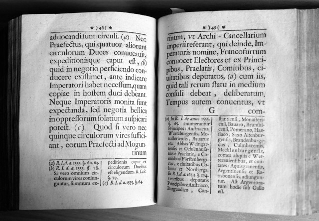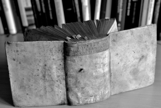 Zgodnie z zasadami bibliografowania powinienem wypisać osobno dane wszystkich dzieł zawartych w klocku introligatorskim. Tym razem odstąpię od zasad, bo wolumin znajduje się w moim księgozbiorze ze względów typograficznych, a nie treściowych. Nota bene na dwóch kartach przyklejonych do wyklejki XVIII-wieczny bibliotekarz wypisał tytuły wszystkich dysertacji w kolejności występowania w księdze.