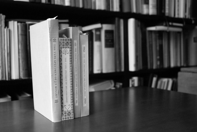 - Harry Carter: The Type Specimen of Delacologne [Lyon 1773]. Amsterdam 1969, Van Gendt & Co. [121×187 mm, wprowadzenie 82 s., faksymile 120 k., oprawa twarda całopapierowa]