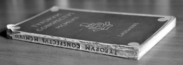 To jedna z bibliofilskich relikwii typograficznych mojego księgozbioru. Smukłego kształtu wzornik pism dwudziestu europejskich i amerykańskich odlewni czcionek i producentów matryc dla maszyn do składania tekstów. Przygotował go John Dreyfus (1918–2002), angielski projektant książek i historyk drukarstwa. Publikacja, w której kroje pism ułożone są według klasyfikacji Maximiliena Voxa, powstała jako pendant wykładu Dreyfusa wygłoszonego 5 czerwca 1957 roku na IX Międzynarodowym Kongresie Przemysłu Poligraficznego w Lozannie podczas targów Graphic Arts Exhibition. Typorum conspectus uczestnikom kongresu zaprezentował Brooke Crutchley z Cambridge University Press, wydawca i drukarz, który był głównym twórcą międzynarodowej renomy tej oficyny.