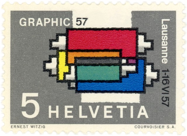 W młodości miałem jeszcze jedną pamiątkę z tamtego czasu. Upamiętniający Graphic 57 szwajcarski znaczek pocztowy o nominale pięciu centymów, zaprojektowany przez Ernesta Witziga w sposób na owe czasy bardzo nowoczesny. Niestety, w cielęctwie mego żywota pozbyłem się wszystkich klaserów ze znaczkami, gdy ich zbieranie przestało mnie bawić.